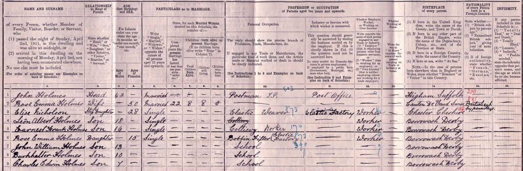 Interestingly, the head of the house, John, was born in Higham, Suffolk, whilst Rose (Nicholson) was a British citizen, born in France, to British parents. The couple had married in 1889, in Chester.